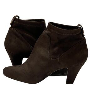 BCBG BROWN DELILAH FAUX SUEDE SLIP ON ANKLE BOOTS SZ 8M EUC
