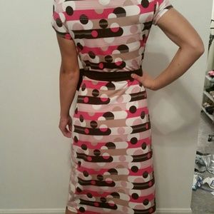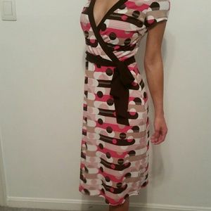 BCBG Belted Faux Wrap Midi Dress Brown and Pink Size Small