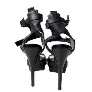 Black Leather Double Buckle Ankle Strap Platform Stiletto. Peep toe, side cut out, ankle strap. 5.5" stiletto heels.