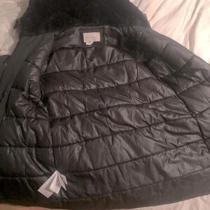 BCBG Black Parka XS Mid-Length with Faux Fur Hood Size XS