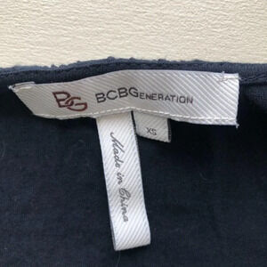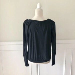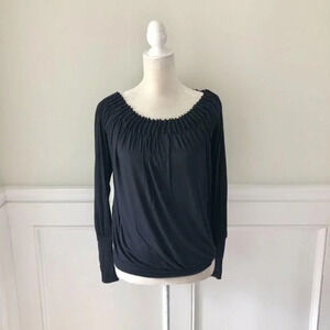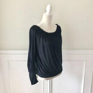 BCBG Black Pleated Neck Long Sleeve Blouse XS