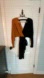 Elegant two-toned ribbed knit dress. Beautiful blend of black and brown colors— perfect dress for the holidays!Tie around the elastic waist for an added touch of elegance.