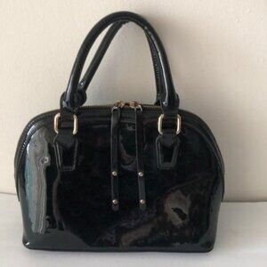 BCBG Black Satchel Patent Fx Leather Top Handles