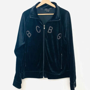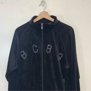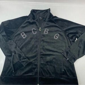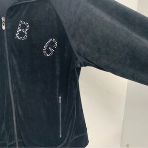 BCBG Black Velour Sweatshirt Jacket 3X Y2k Bling Pockets Zip Boho Goth 90s Moto
