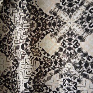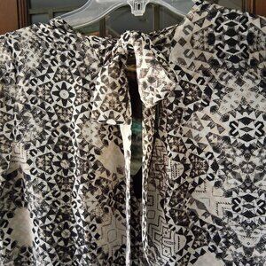 BCBG Black & White Abstract Sheer Sleeves Dress sz M /B9