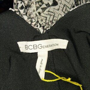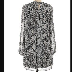 BCBG Black & White Abstract Sheer Sleeves Dress sz M