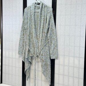 BCBG Blue Olive Asymmetrical Knit Cardigan L Loose Weave Open Front Boho Sweater