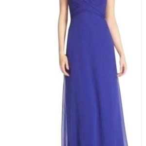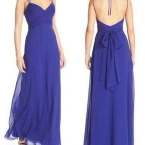 BCBG Blue Rosabelle Open Back Silk Gown Formal Dress