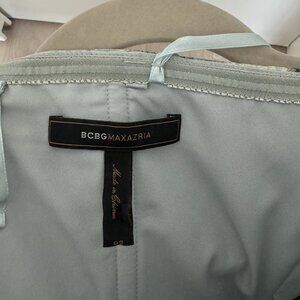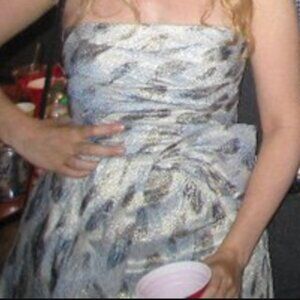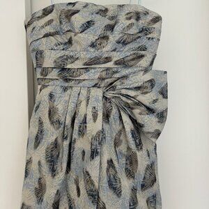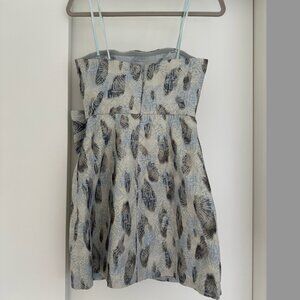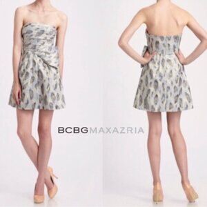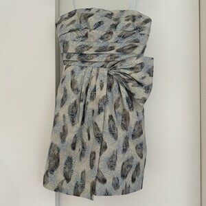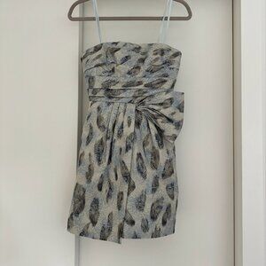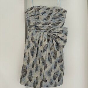 BCBG Blue and Metallic Jacquard Mini Dress With Bow Detail