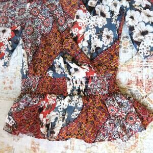 BCBG Boho Ruffle Wrap Blouse Long Sleeve V-Neck Women’s Size XS