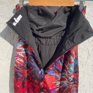 BCBG Bold Strapless Mini Dress Fiery Red Purple Abstract Print Glam Y2k Revival