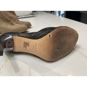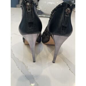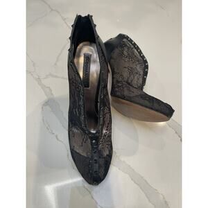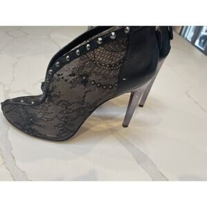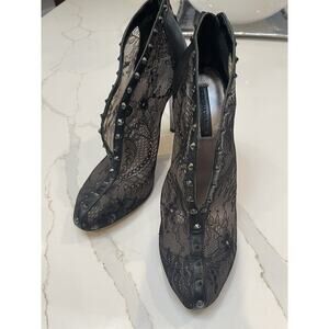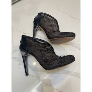 BCBG MaxAzria size 10 booties in beautiful lace like fabric and leather.