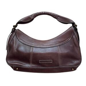 Elegant brown leather shoulder bag. Features a curved flap and sturdy handle. Perfect for everyday use.