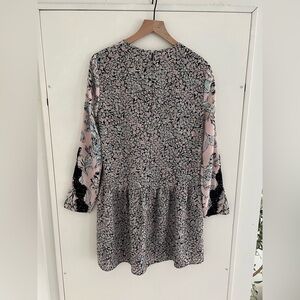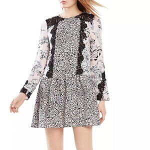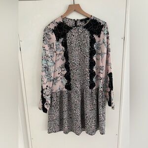 Contrast prints, lace insets at yoke, bodice and sleeves