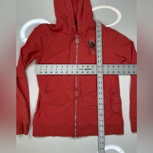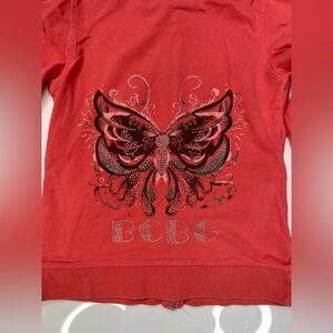 BCBG Butterfly Rhinestones Full Zip Hoodie Women Small Salmon Pink Y2K