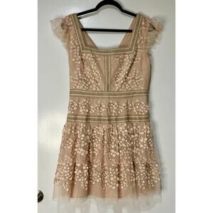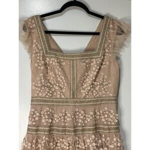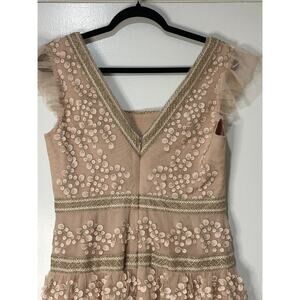 BCBG Cap Sleeve Short Evening Dress Bare Pink Size 8 NWOT Embroidered Details