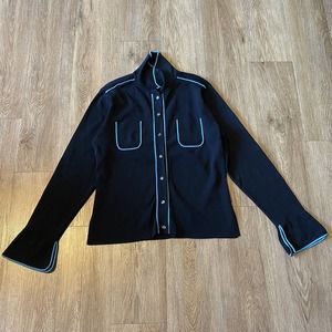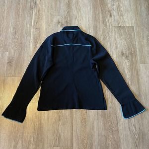 BCBG Cardigan Black Blue Trim Long Bell Vented Sleeve Knit Sweater Women's Large