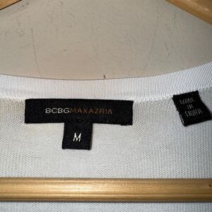 BCBG Cardigan Sweater Womens M Floral Beaded VNeck Pink White Spring Lightweight