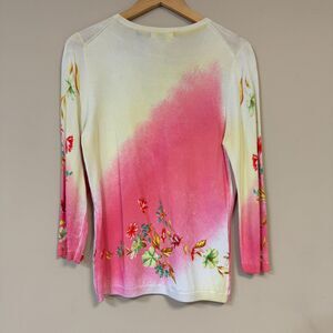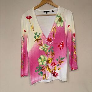 BCBG Maxazria Floral Beaded V-Neck Cardigan Womens M Pink White Sweater Spring