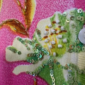 A beautiful lightweight cardigan sweater to add to your wardrobe. Perfect for everyday or to wear to work. Comfortable and versatile. Floral sequin embellishments and beading on front.