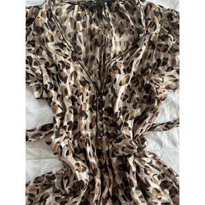 BCBG Carressa Zotia Leopard Silk Y2K Whimsygoth Babydoll Top Size Medium