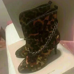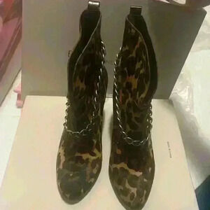 BCBG Cheetah Boot Heels w Chain Detail size 7.5