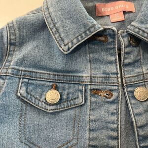 This blue jean jacket showcases a timeless style with a pointed collar and contrasting stitching, perfect for adding a touch of classic charm to any outfit.