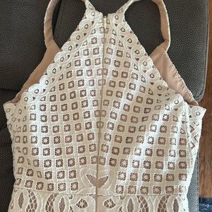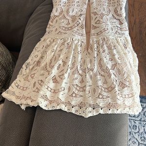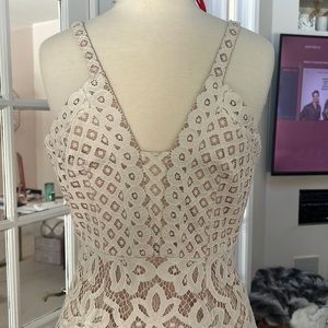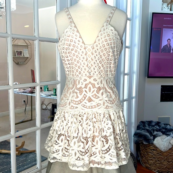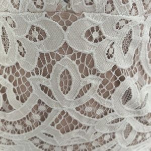 This mini white lace BCBG dress is so hot on. The cuts are so flattering in the detail makes it look like $1000 dress