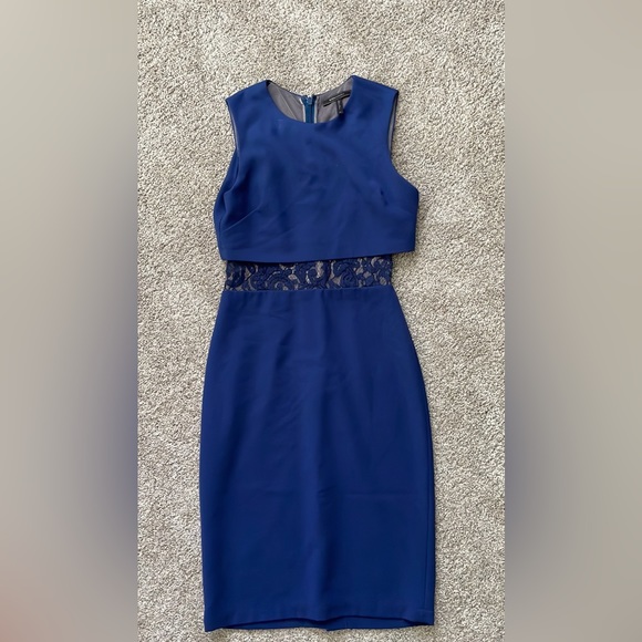 EUC. Worn 2 times. Hits just about an inch or two below my knee (im 5’7’). The nude part is sheer lined lace. Absolutely stunning. The dress is fitted but not body con.