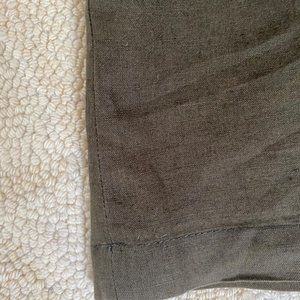 Good condition. Barely wore. Thin lightweight linen material. Unique dark green color. Slight stain on leg bottoms (see pictures).