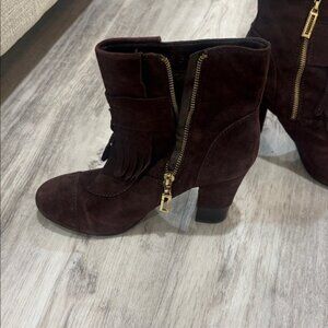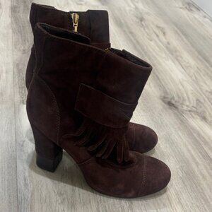 BCBG Dark Brown Suede Fringe Heeled Boots BOHEMIAN SIZE 8