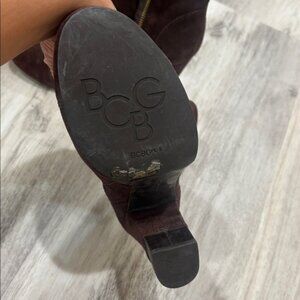BCBG Dark Brown Suede Fringe Heeled Boots BOHEMIAN SIZE 8 IN GOOD CONDITION, no flaws Elegant dark brown suede boots with fringe detail. Perfect for stylish outings.