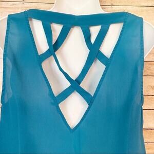 BCBG Dark Teal Cross Back Tank Top Size Small