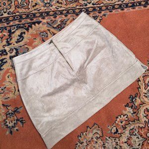 Faux suede skirt with large front pockets and a back zip closure. Nice oatmeal color. Worn a few times for special occasions.