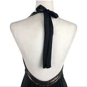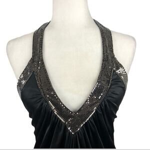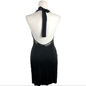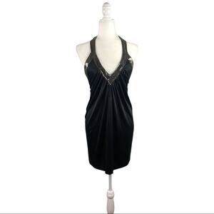 BCBG Diamante Mesh Mini Dress Black V-Neck Halter XS Clubwear Disco Party