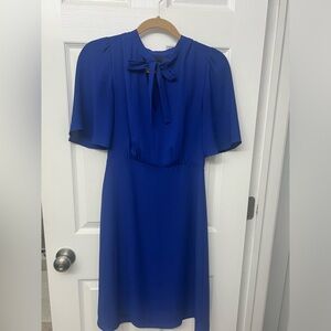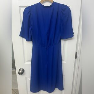 This blue dress is perfect for many occasion. I wore as a guest to a wedding, Easter Sunday, fundraiser, and baptism. It’s versatile and stunning. Back has zip closer and two buttons above zipper that’s just at low back/waist offering flirty flare.