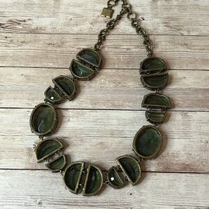 This elegant necklace features stunning green acrylics set in a stylish design. Perfect for adding a touch of sophistication to any outfit.