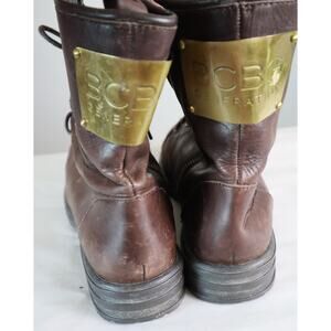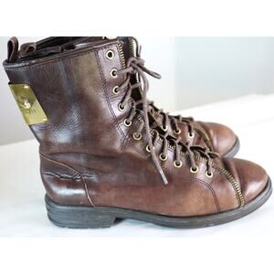 Perfectly worn and distressed. BCBG Eloise Brown Moto Boots Combat Flat Lace up Round Toe Womens 8 M