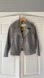 Adorable grey faux leather jacket with silver hardware. Inside is lined in a beautiful green linen like print. Very comfortable. Absolutely no flaws, looks new.
