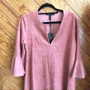 BCBG Faux Suede Bell Sleeve Shift Dress Blush Pink