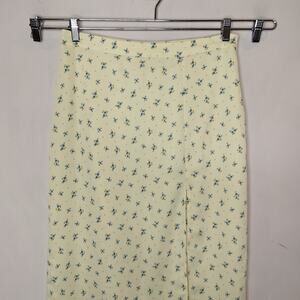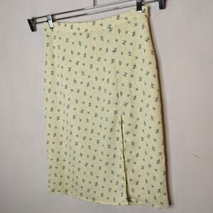 BCBG Floral Skirt Side Slit Yellow Dainty Pencil MIdi