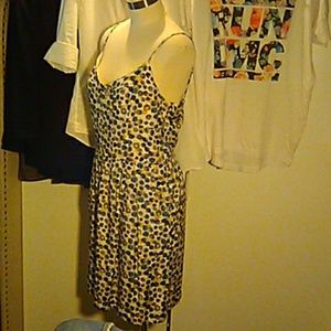 BCBG GENERATION DRESS lined, shiny/silky poly blend with blue pink grey and yellow dots! Like new condition no blemishes worn only once!