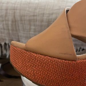 This is a BCBG generation nude slip on high heel (burnt orange color) stacked wedge shoe Size 6 /36