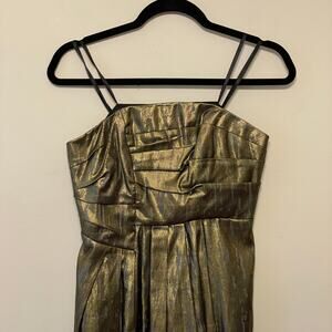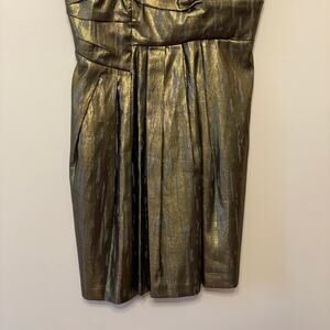 BCBG Generation 4 mini dress formal prom metallic pleated pockets gold party