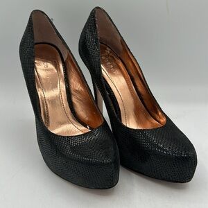 Pretty fancy black BCBG 5” heel with light wear. Black, faux skin. Make an offer! I must sell all my shoes and get out of my storage room!!