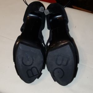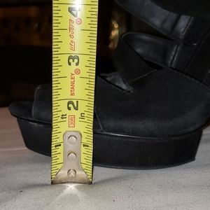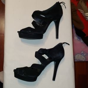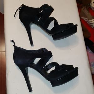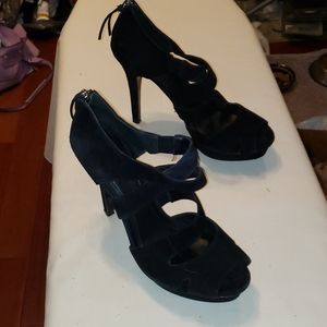 Nice comfortable suede, strappy, platform heels. They, unlike a lot of other shoes have extra cushioning at the ball of your foot. Great if you have to do a lot of walking.