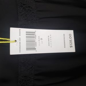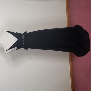 Black Chiffon Maxi Dress, Lace details around the waist. Waterfall Ruffles that flows down the front of the dress. Back zipper. Arm to Arm 17" Length 60"