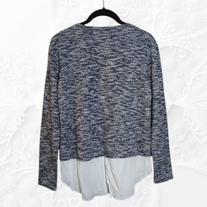 BCBG Generation Black & White Sweater Top With Faux Dress Shirt Hem