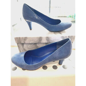 BCBG Generation Blue Leather Pumps Sz 8 /38 Kitten heel Almond shape