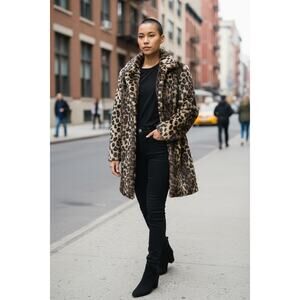 BCBG Generation Cheetah Leopard Faux Fur Coat M